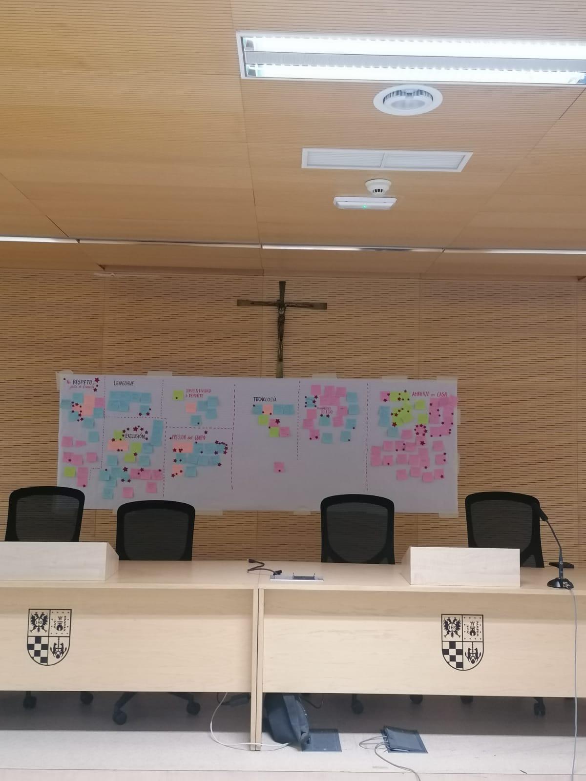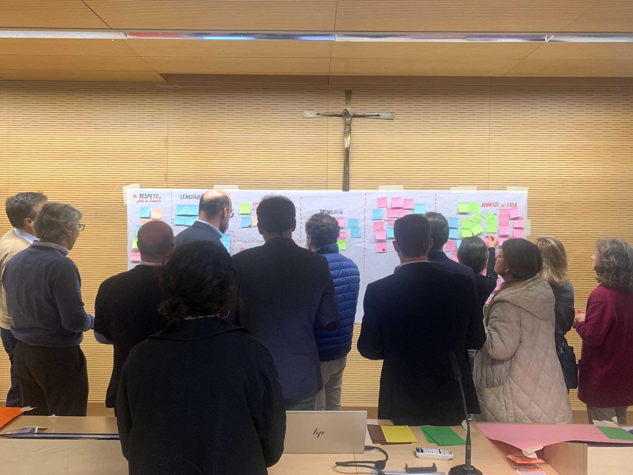 Introdujo el encuentro el padre director Antonio España SJ y posteriormente se trabajó una dinámica en grupos heterogéneos contestando algunas preguntas que se pusieron en común en un gran cartel.